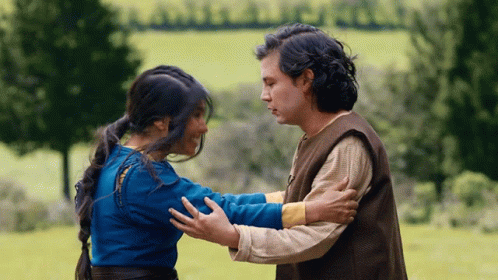 Iria and Antonella Valeriano share a warm embrace in a green field, a moment of welcome and reunion.