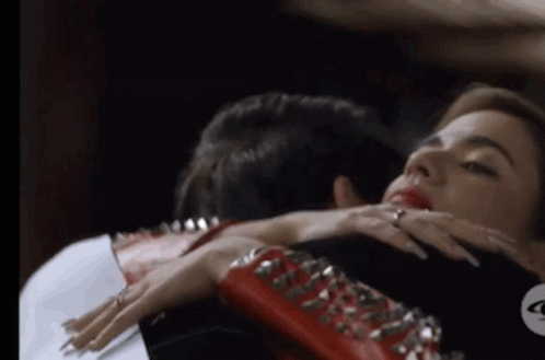 Lareinadelflow and Charleimy share a strong embrace, with Lareinadelflow wearing a red spiked bracelet.