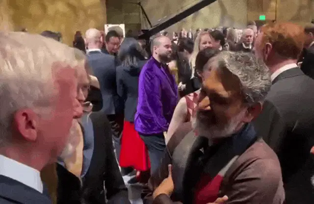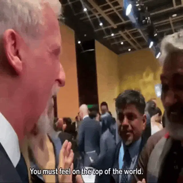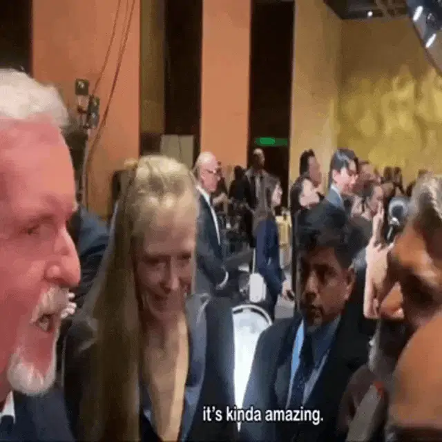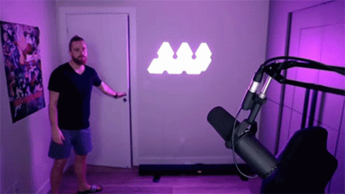 Lubatv opens a door to reveal a giant glowing Earth, creating a surreal scene in a purple-lit room.