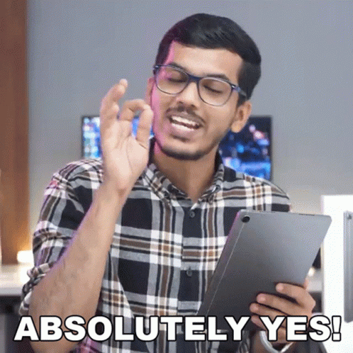 Dhananjay Bhosale, wearing a plaid shirt and glasses, emphatically says 'Absolutely Yes!' while holding a tablet.