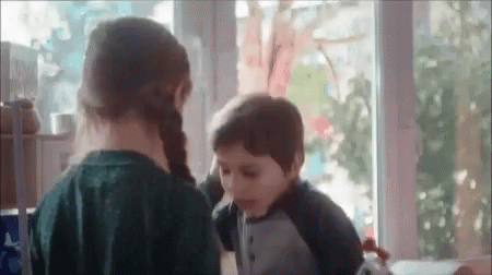 Two children, a boy and a girl, are seen talking in a room, possibly discussing a 'rip-off' or 'scam' in German.