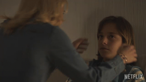Older woman gently caresses the face of Izan Llunas, portraying young Luis Miguel, in a tender moment.