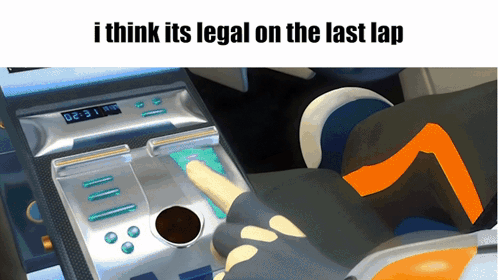 A Hot Wheels Acceleracers meme featuring a car race in space and the phrase 'i think its legal on the last lap'.