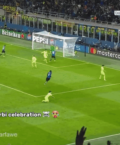 Acerbi scores a crucial goal for Inter, celebrating shirtless in a Champions League match against Barcelona.