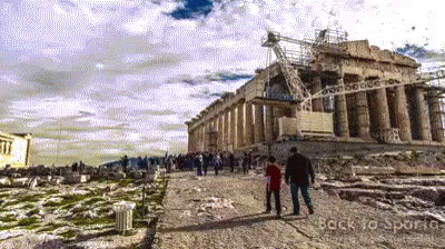 Tourists explore the ancient Acropolis in Athens, Greece, with the Parthenon visible.