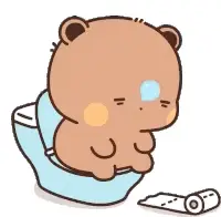 Cute cartoon bear sitting on a toilet, looking distressed, with toilet paper nearby.
