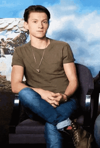 Tom Holland makes a heart gesture with his hands, surrounded by animated hearts, showing love and appreciation.