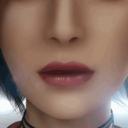 Close-up of Ada Wong's eye and face, featuring dark eyeshadow and red lips.