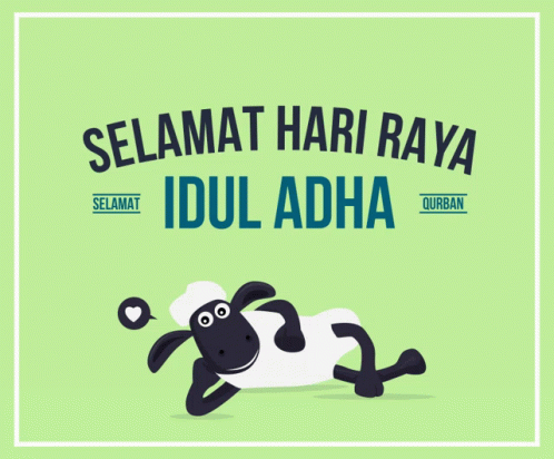 A cute cartoon sheep relaxing, wishing "Selamat Hari Raya Idul Adha" and "Qurban".