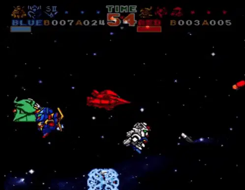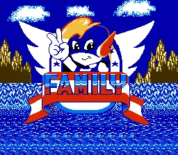 Afterburner Famicom game's 'Mission Complete' screen and staff credits, featuring retro pixel art from Sunsoft.