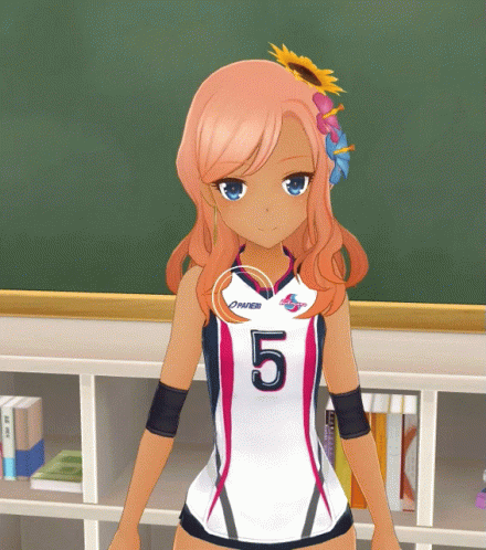 a girl wearing a number 5 jersey is standing in front of a blackboard