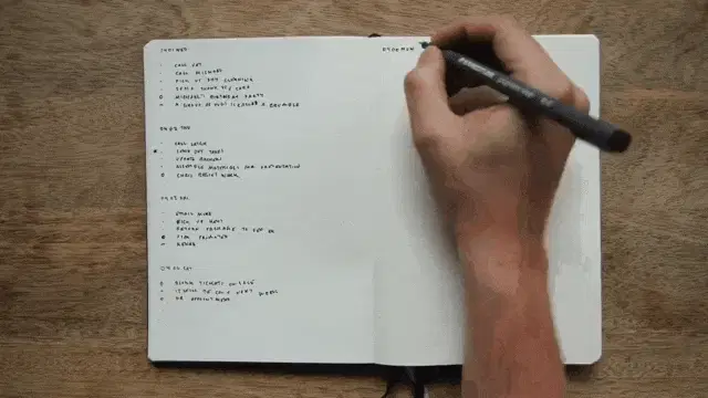 A detailed flip-through of a spiral-bound planner/agenda with sections for schedules, goals, medical appointments, and travel.