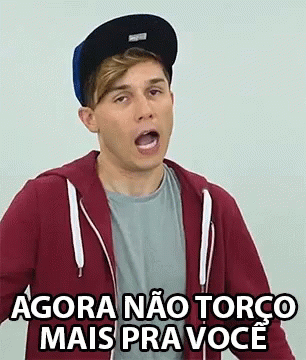 Gato Galactico expresses 'Agora Não Torço Mais Pra Você' (I don't root for you anymore) with a pointed finger.