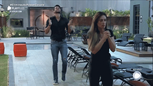 A couple from Power Couple Brasil, a man and a woman, are seen praying and thanking God during an elimination.