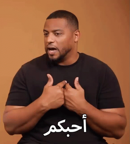 Fahad, wearing a black shirt, makes a gesture as Arabic text 'أحبكم' (I love you) appears on screen.