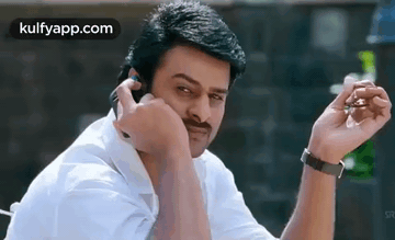 Prabhas on call from his blockbuster film Mirchi, re-released in Telugu states for his birthday.