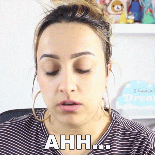 Debora Spiga, also known as Debby Arts, looks down with a disappointed expression, accompanied by the caption 'AHH...'