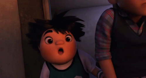 Cartoon character with wide-open mouth, screaming in shock and terror.