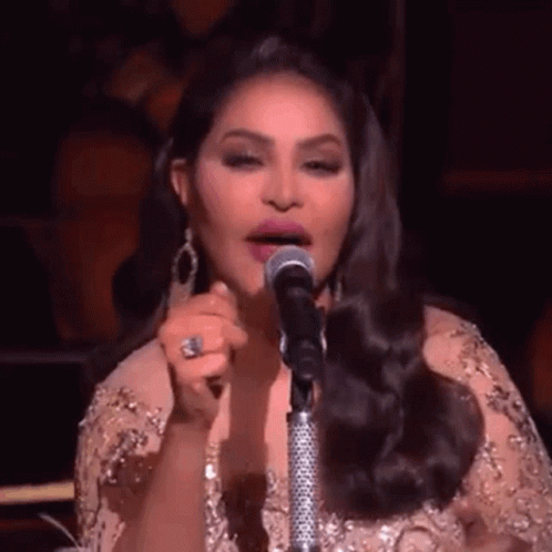 Ahlam Omfahed delivers a powerful vocal performance live on stage, captivating the audience with her presence.