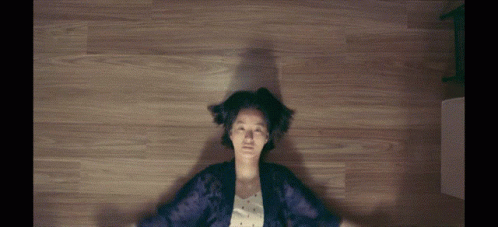 Ahn Eunyeong from School Nurse Files lying on a wooden floor, moving her arms in a starfish motion.