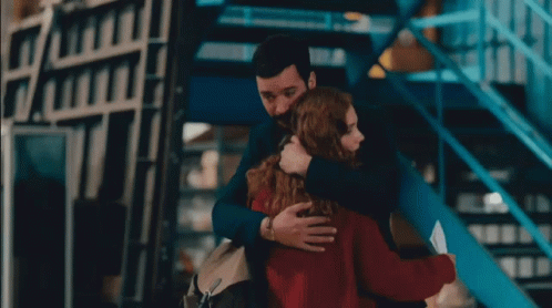 Ahsen Eroglu and Barisarduc share a heartfelt hug, portraying Kumru and Kuzgun in an emotional moment.