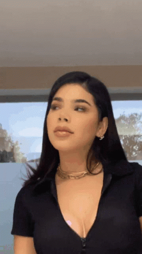 Kenia Os showcases her Aiconik style, wearing a black shirt and gold necklace, looking confidently at the camera.