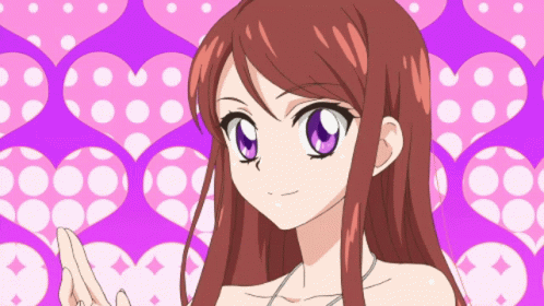 Aikatsu character Ran Shibuki winks and blows a heart, set against a vibrant pink heart background.