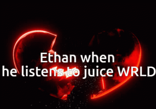 Ethan's emotional reaction to Juice WRLD's music, depicted by a glowing, broken red heart.