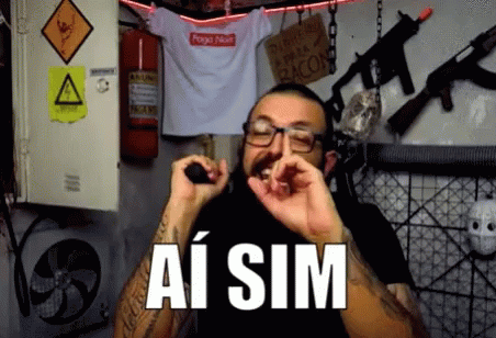 Brazilian YouTuber Cauemoura makes a 'shush' gesture with the caption 'AÍ SIM' (Oh Yes) on screen.