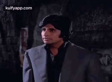 Amitabh Bachchan delivers his iconic 'Aaj Mere Paas Hai' dialogue from Deewar, standing in a suit.