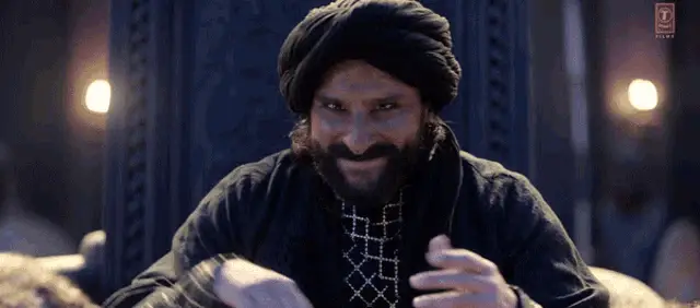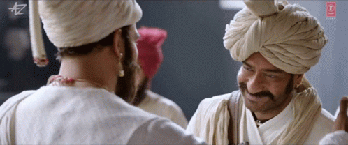 Ajay Devgn shares a warm embrace with another man, likely Saif Ali Khan, in a scene from the movie Tanhaji.