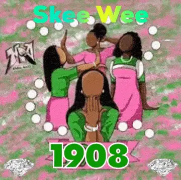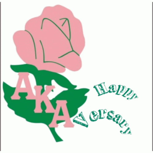 A vibrant graphic featuring a pink rose, green leaves, and the text 'AKA Happy Anniversary'.