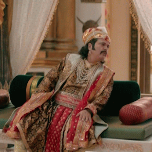 Emperor Akbar, from the Akbar Birbal series, looks confused and deep in thought, pondering 'Kya?' (What?).
