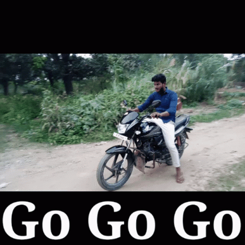 Akc Alok, also known as Alok Kumar Chaurasiya, rides a motorcycle on a dirt road with 'Go Go Go' text.