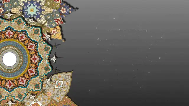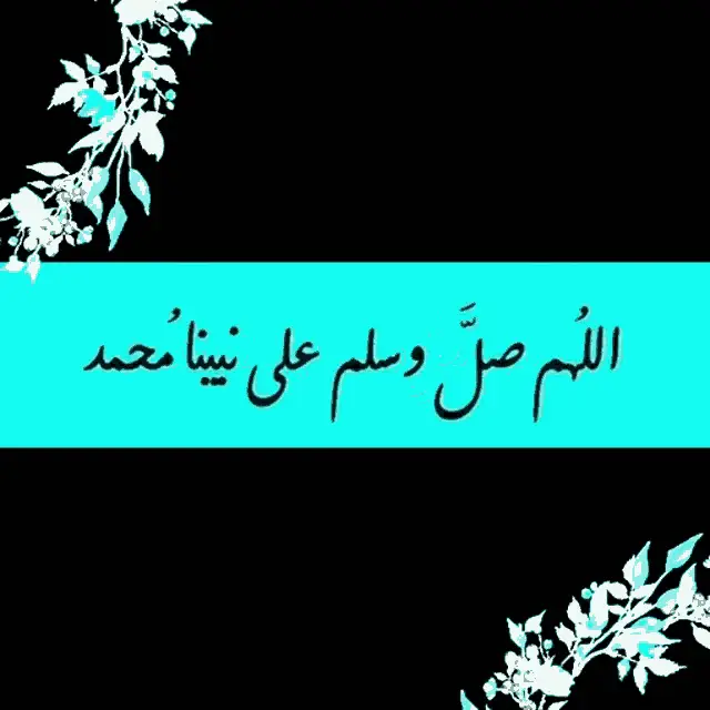 Animated prayer in Arabic: 'Oh Allah, send prayers, peace, and blessings upon our Prophet Muhammad,' with vibrant Islamic patterns.