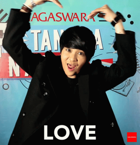 Mita The Virgin, dressed in a black coat, forms a heart shape with her hands, expressing love.