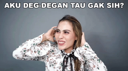 Lilis Darawangi expresses nervousness with hands on her head, saying 'Aku Deg Degan Tau Gak Sih?'