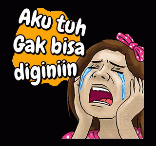 A cartoon woman cries intensely with the Indonesian phrase "Aku tuh Gak bisa diginiin" (I can't be treated like this).