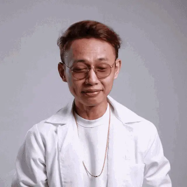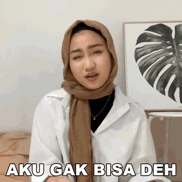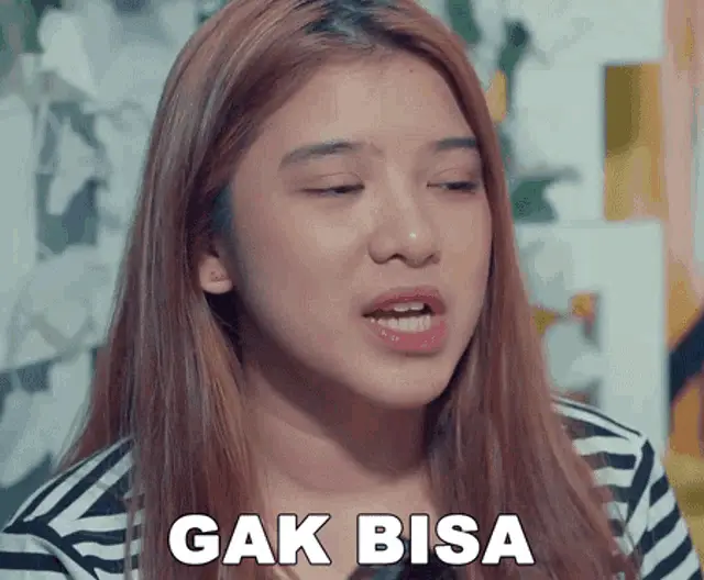 Ayu Gani, with purple hair, asks 'Aku Harus Apa?' (What should I do?) while wearing a colorful floral top.