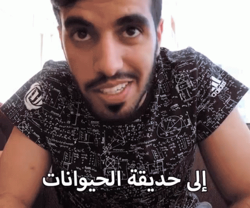Abo Reja (ابورجاء) announces he is going to the zoo, wearing a black Adidas shirt.