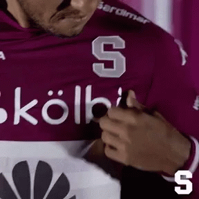 Johan Venegas, a Saprissa player, smiles while wearing his team's purple jersey with the Kölbi logo.
