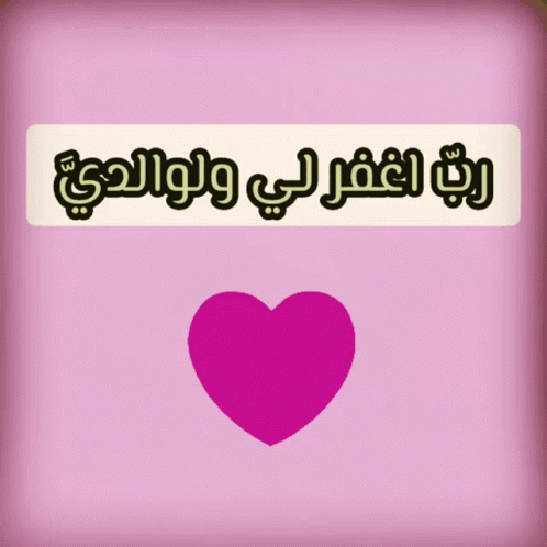 A pink heart with Arabic text, a prayer asking for forgiveness for oneself and one's parents.