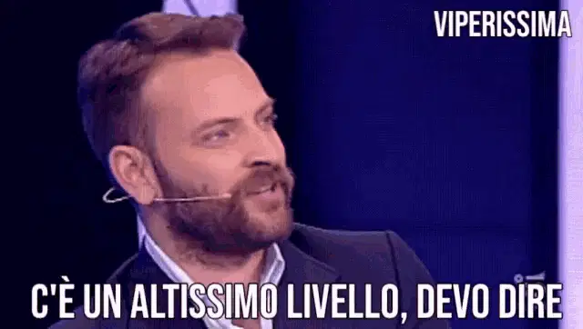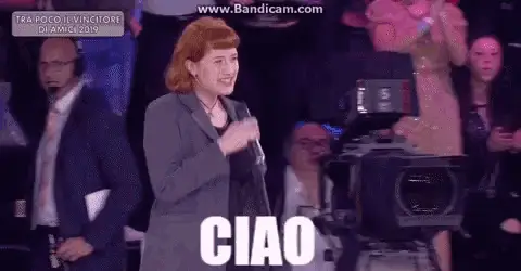 Alberto Urso speaking into a microphone, proudly declaring 'E' il Fascino Siculo' (It's the Sicilian Charm).
