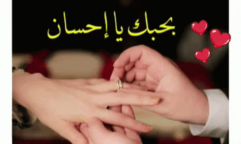 A man proposes to Ehsan, placing an engagement ring on her finger, with 'I love you, Ehsan' in Arabic.