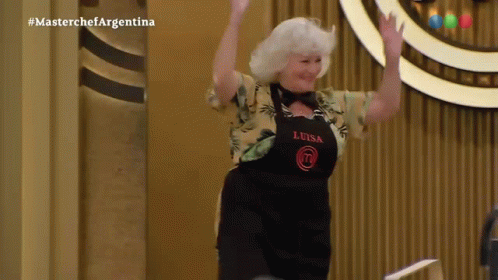 Luisa Albinoni's joyful dance on the Masterchef Argentina stage, radiating happiness and cheer.