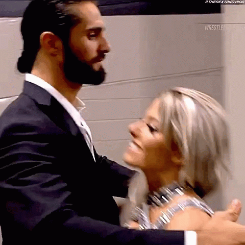 WWE Superstars Alexa Bliss and Seth Rollins share a warm hug backstage at WrestleMania.
