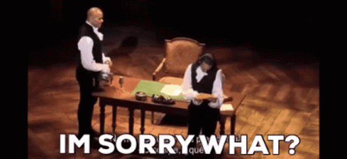 Alexander Hamilton reacts with 'I'm Sorry What?' in this dramatic theatrical moment from the musical Hamilton.