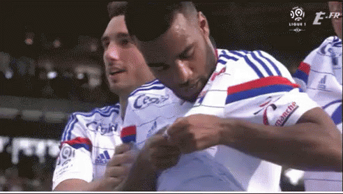 Alexandre Lacazette, the football player, adjusts his shirt during a Ligue 1 soccer match.