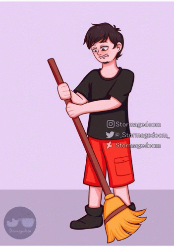 Cartoon fanart of Alexby11, also known as Alexby, sweeping with a broom, featuring 'STORMAGEDOOM'.