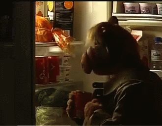 Alf the alien puppet is caught by the Tanner family while trying to get a midnight snack from the refrigerator.